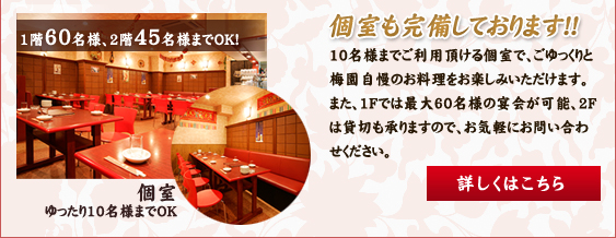 本場の料理人が腕を振るう、豪華宮廷料理の数々。 鮑に北京ダック、フカヒレの姿煮など、豪華な食材をふんだんに使った数々のコースを リーズナブルな価格にてご提供しております。 梅園だからできる、特別コース料理を是非ご堪能下さい。